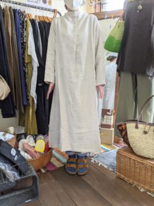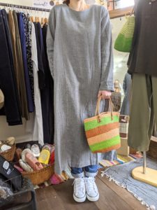 麻100%素材の2wayワンピース